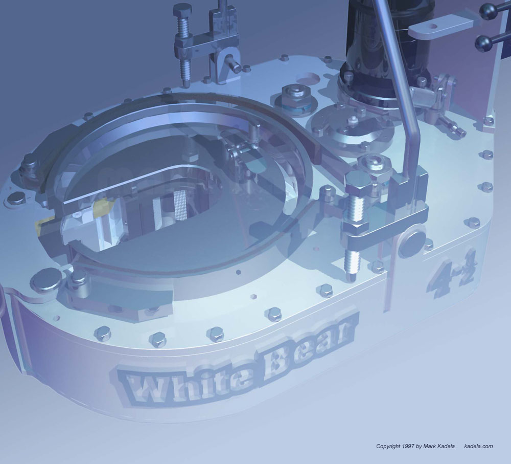 Circa 1997, Power Tong Drive Unit Prototype for Alberta oilfield production was documented in 3D and Visualized in MicroStation Modeler for White Bear Energy Services Inc.